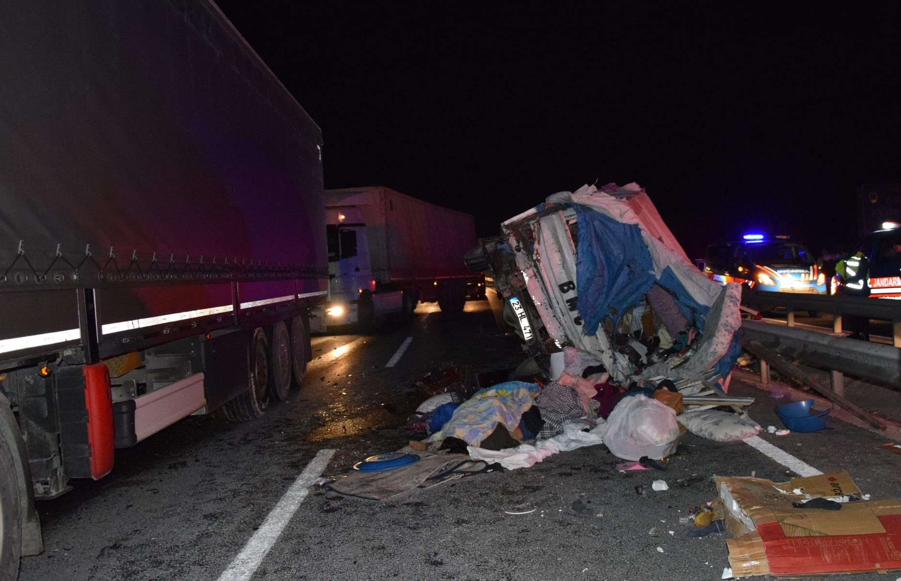 Çarpışmanın etkisiyle yol kenarındaki bariyerlere çarparak ters dönen kamyonetin sürücüsü Halman yaralanırken, kasada yolculuk yapan eşi Nazlı (39), çocukları Sabahattin (20), Derya (17), Adem (14) ve Ayfer (9) yola savruldu.