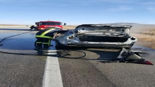 Cihanbeyli'de Seyir Halindeki araç alev aldı