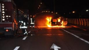 Cihanbeyli'de kaza yapan damadını alıp kızıyla birlikte şehir merkezine dönen adamın arabası bir anda alev alev yandı.